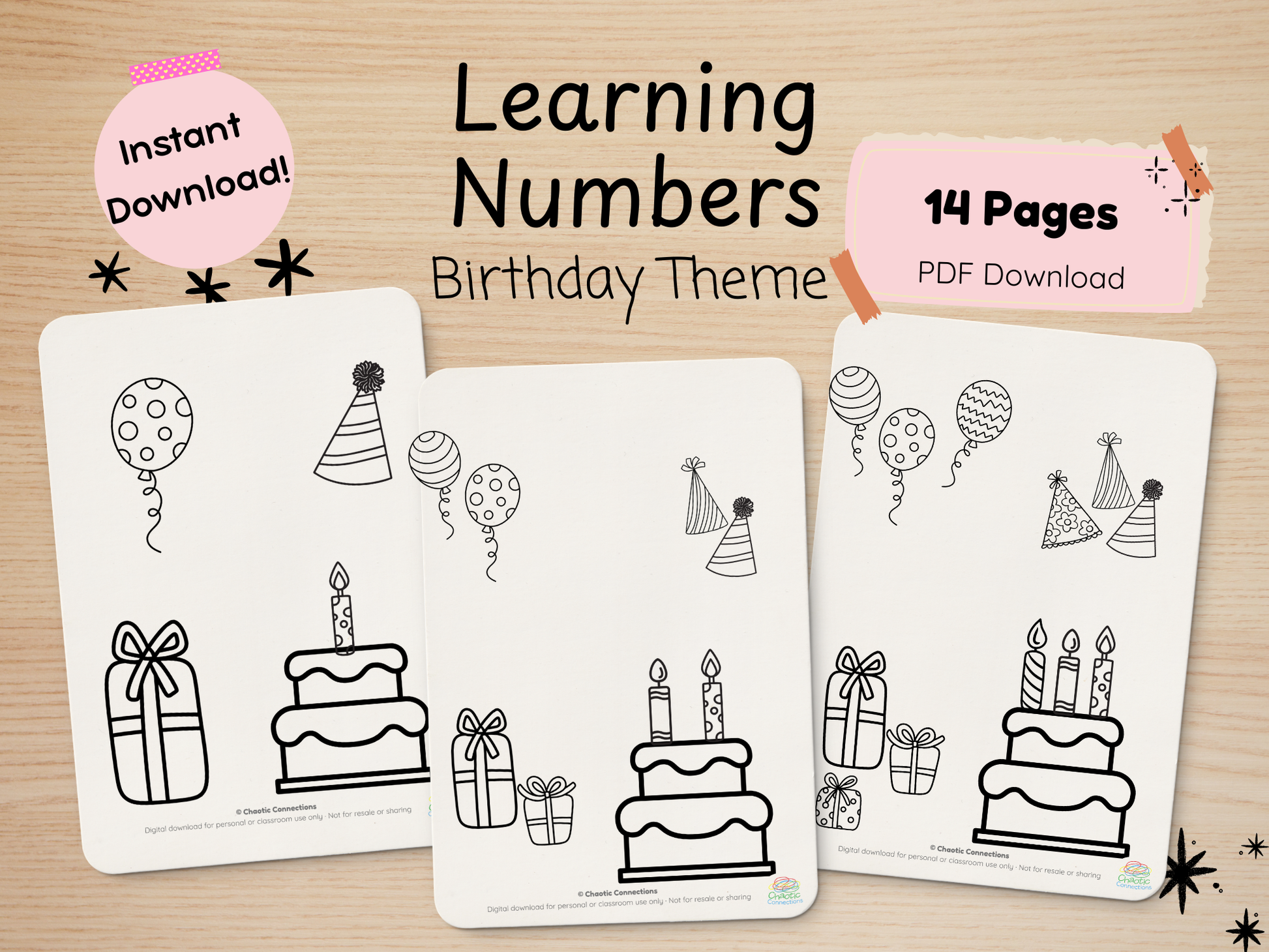 Birthday Theme Numbers 1–10 Activity Pack | Printable Toddler Math Worksheets | Fun Themed Learning | 14 Pages